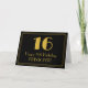 Este diseño inspirado y vintage de tarjetas de felicitación inspirado en los años 20, presenta un gran estilo Art Déco inspirado en el número "16", el mensaje "Feliz 16 cumpleaños", un nombre personalizado, y un patrón de borde formado por líneas delgadas en el frente. El fondo del frente es negro de color. El interior tiene un mensaje de bienvenida de cumpleaños de personalizado, o tal vez podría ser borrado y dejado en blanco si un mensaje se va a escribir a mano en su lugar. Una tarjeta de felicitación personalizada de cumpleaños como esta podría ser enviada para celebrar el 16º cumpleaños de alguien. [~Z0000463]