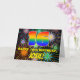 El frente de este diseño de tarjeta de felicitación de cumpleaños alegre y emocionante presenta un gran número "16" con un patrón de gradiente inspirado en el espectro del arcoíris multicolor, junto con el mensaje "FELIZ 16º CUMPLEAÑOS", y un nombre de destinatario personalizado. El fondo de la parte frontal presenta un patrón colorido que se asemeja a fuegos artificiales de celebración que estallan. El interior tiene un mensaje de felicitación de cumpleaños personalizado, o quizás podría estar en blanco si se desea escribir un mensaje a mano en su lugar. Una tarjeta de felicitación de cumpleaños llamativa y personalizable como esta podría ser una forma divertida de enviar felicitaciones de cumpleaños a alguien que está celebrando su decimosexto cumpleaños. [~Z0000619]