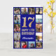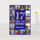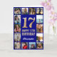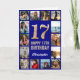 Tarjeta 17.º feliz cumpleaños Collage de fotos azul y oro
