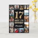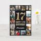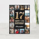 Tarjeta 17.º feliz cumpleaños Collage de fotos negro y oro
