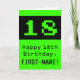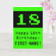 La parte delantera de este divertido y nerd diseño de tarjetas de felicitación con temática de cumpleaños cuenta con un gran estilo de videojuegos retro verde número "18". También incluye el mensaje de bienvenida de cumpleaños "Feliz cumpleaños número 18", y un nombre que puede ser editado. El interior presenta un mensaje de bienvenida de cumpleaños de personalizable, o tal vez podría ser borrado y dejado en blanco si se va a escribir un mensaje a mano. Una célebre tarjeta de cumpleaños como esta puede ser una manera divertida de enviar deseos de cumpleaños a alguien que está celebrando su decimoctavo cumpleaños. [~Z0000430]