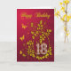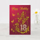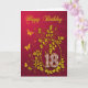 Una tarjeta de cumpleaños muy elegante que puedes personalizar. Mariposas doradas y follaje rosa enmarcan un número con joyas.