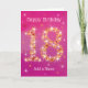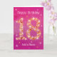 Tarjeta de cumpleaños número 18. 18 en Estrellas - Número de Edad - Decimoctava Tarjeta de Cumpleaños - Fondo Rosa/Púrpura - Texto personalizable Tarjeta Rosa/Púrpura con diseño de número de estrella - el número "18" se crea con estrellas amarillas, rojas y blancas Texto personalizable: delante de la tarjeta: Cumpleaños Feliz y Añadir su Nombre. Texto personalizable: tarjeta interior: Deseándote un Feliz 18º cumpleaños. Puede editar o eliminar el texto que desee haciendo clic en "Personalizar esta plantilla". Hay más colores y otras edades disponibles. Si tiene un requisito específico, por favor contáctame.