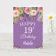 19.º Nacimiento Acuarela Floral Flora Púrpura con nombre y edad personalizados. Para una mayor personalización, haga clic en el botón "Personalizar" y utilice nuestra herramienta de diseño para modificar esta plantilla.
