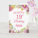19.º Nacimiento Watercolor Floral Flores Pink Card con nombre y edad personalizados. Para una mayor personalización, haga clic en el botón "Personalizar" y utilice nuestra herramienta de diseño para modificar esta plantilla.