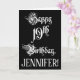 La parte delantera de este elegante y elegante diseño de tarjetas de felicitación con temática de cumpleaños incluye el mensaje "Feliz cumpleaños número 19", en un texto de estilo de escritura de lujo, en un fondo de color negro. El interior tiene un mensaje de bienvenida de cumpleaños personalizado, o tal vez podría ser borrado y dejado en blanco si se va a escribir un mensaje a mano. Una generosa y personalizada tarjeta de felicitación de cumpleaños como esta podría ser una manera respetable de enviar saludos de cumpleaños a alguien que está celebrando su decimonoveno cumpleaños. [~Z0000554]