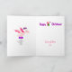 Una divertida tarjeta de Navidades de Dinosaurio 1er con un purpurina rosa pálido y morado dinosaurio personalizado dinosaurios envueltos en regalos / regalo y un fondo de un cielo azul con copos de nieve cayendo. Feliz primera Navidad como tipografía decorativa festiva. Haría una hermosa tarjeta navideña para regalar a cualquier niñita que ame los dinosaurios. El lado izquierdo de la tarjeta tiene el lindo dinosaurio rosa pterodáctilo que lleva campanas de Navidades. Personalice con un nombre y agregue o modifique el mensaje interno. ", mucho amor"