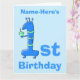 Tarjeta 1.ª personalizado de cumpleaños, de azul. Nombre p