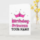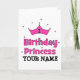 Tarjeta 1.ª Princesa de Cumpleaños con corona rosa