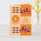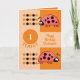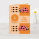 Tarjeta 1.ᵉʳ cumpleaños 1 hoy ladybugs naranja rojo