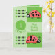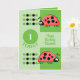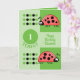 Tarjeta 1.ᵉʳ cumpleaños 1 hoy ladybugs verde rojo