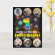 La parte delantera de este audaz y alegre diseño de tarjetas de felicitación con temática de cumpleaños presenta un gran número "1" con un colorido patrón de gradiente inspirado en el espectro del arcoiris, junto con el mensaje "FELIZ PRIMER CUMPLEAÑOS", y un nombre de personalizable, en un patrón inspirado en fuegos artificiales con ráfagas de colores. Cerca de la parte superior e inferior del frente hay imágenes que se pueden personalizar, tal vez con fotos de la familia y amigos del destinatario. El interior presenta un mensaje de bienvenida de cumpleaños de personalizable, o tal vez podría ser borrado y dejado en blanco si se va a escribir un mensaje a mano. Una tarjeta de felicitación alegre y de personalizable como esta puede ser una manera divertida de enviar saludos de cumpleaños a alguien que está celebrando su primer cumpleaños. (Fotografía © Storytree Studios, Stanford, CA.) [~Z0000660]