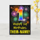 La parte delantera de este emocionante, divertido y colorido diseño de tarjetas de felicitación temáticas de cumpleaños incluye un gran número "1" con un patrón inspirado en el gradiente del espectro del arco iris, junto con el mensaje "Feliz primer cumpleaños", y un nombre editable para el destinatario. El frente también presenta un colorido patrón de fondo inspirado en la apariencia de los fuegos artificiales de celebración que estallan. El interior presenta un mensaje de bienvenida de cumpleaños personalizado, o tal vez podría ser borrado y dejado en blanco si se va a escribir un mensaje a mano. Una tarjeta de cumpleaños de personalizable como esta podría ser una manera divertida de enviar un mensaje celebrando el primer cumpleaños de alguien. [~Z0000442]