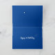 Feliz primer cumpleaños, tarjeta de elefante de niño en azul y blanco. El exterior de la tarjeta muestra una imagen de un elefante ilustrado soplando agua en celebración. El texto mostrado incluye espacio para el nombre del bebé y el mensaje interno puede ser personalizado. Una tarjeta linda para que un abuelo le dé a su nieto o para que una mamá o papá le dé a su hijo en su primer cumpleaños.
