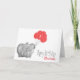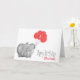 Tarjeta 1.ᵉʳ elefante de cumpleaños y chica de globo rosa