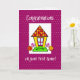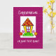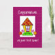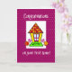 Ya sea nueva o nueva para ellos una primera casa es tan especial! Esta tarjeta linda y caprichosa con una casa sobre un fondo morado y punteado será la carta correcta para desearles felicitaciones por su Primer Hogar!