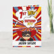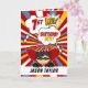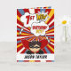 Una tarjeta de cumpleaños más pequeña con un puñetazo poderoso para el niño que celebra su primer cumpleaños y puede hacerlo como un superhéroe al estilo de las historietas.