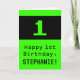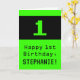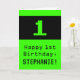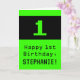 La parte delantera de este divertido y nerd diseño de tarjetas de felicitación con temática de cumpleaños cuenta con un gran estilo de videojuegos retro verde número "1". También incluye el mensaje de bienvenida de cumpleaños "Feliz primer cumpleaños", y un nombre que puede ser personalizado. El interior presenta un mensaje de bienvenida de cumpleaños personalizado, o tal vez podría ser borrado y dejado en blanco si se va a escribir un mensaje a mano. Una tarjeta de cumpleaños de personalizable como esta puede ser una manera divertida de enviar deseos de cumpleaños a alguien que está celebrando su primer cumpleaños. [~Z0000430]