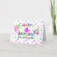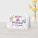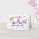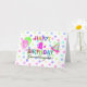 Una tarjeta de cumpleaños del fiesta de la diversión para una nieta de 1 año con confeti en el fondo en colores en colores pastel, el centro con "1r cumpleaños feliz colorido" y la "nieta" en negro. En el lado izquierdo de las palabras usted encuentra un globo rosado y un globo verde del lunar, un gorra del lunar del fiesta en la derecha.