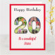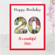 Celebra el cumpleaños 20 de tu hermana, con una tarjeta grande que es un collage de fotos especial y único. Esta maravillosa tarjeta de cumpleaños grande para esa hermana especial tiene las 20 hechas de tu propia elección de fotos familiares. La plantilla está diseñada para que edites "A una hermana maravillosa" a un mejor amigo o a cualquier otra persona que desees. El texto de ambas páginas dentro de la tarjeta también se puede editar. Las fotos se agregan desde la parte superior izquierda de las dos hacia la parte inferior derecha. El cero se rellena de arriba a abajo. El texto de la tarjeta incluye una maravillosa tipografía de estilo de escritura roja con lápiz labial. La foto utilizada como ejemplos son todas imágenes cuadradas con la figura principal aproximadamente central. La tarjeta está disponible en una gama completa de tamaños hasta la tarjeta gigante. Ver nuestra tienda para más tarjetas de cumpleaños.