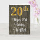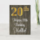 Este diseño de tarjeta de felicitación de cumpleaños lujoso, elegante y sofisticado presenta un gran número ordinal “20º” con apariencia dorada falsa/imitada, junto con el mensaje de felicitación de cumpleaños “Feliz cumpleaños número 20”, y un nombre personalizable en una fuente de estilo caligráfico en la parte frontal. El fondo de la parte frontal tiene un patrón que imita a la madera. El interior tiene un mensaje de felicitación de cumpleaños personalizado, o podría estar en blanco si se desea escribir un mensaje a mano. Una tarjeta de felicitación de cumpleaños personalizada y sofisticada como esta podría ser utilizada para celebrar el vigésimo cumpleaños de alguien. [~Z0000519]