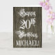Tarjeta 20th Birthday: Fancy, Elegant Text; Faux Wood Look