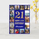 Tarjeta 21.ᵉʳ Feliz Cumpleaños Collage de fotos Azul y Oro
