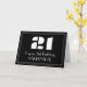 Este diseño clásico de tarjetas de felicitación de cumpleaños inspirado en la aparición de los años 20 presenta un gran estilo Art Déco inspirado en el número "21", el mensaje "Happy 21st Birthday", un nombre personalizado, y un patrón de frontera que consiste en líneas delgadas en el frente. El fondo del frente es negro de color. El interior tiene un mensaje personalizado de bienvenida de cumpleaños, o tal vez podría ser borrado y dejado en blanco si se va a escribir un mensaje a mano. Una tarjeta de felicitación de cumpleaños de personalizable como esta podría ser una manera divertida de dar saludos de cumpleaños a alguien que está celebrando su vigésimo primer cumpleaños. [~Z0000486]
