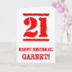 Este divertido diseño de tarjetas de felicitación con temática de cumpleaños presenta un gran número rojo "21" con un estilo inspirado en el sello de goma, además del mensaje de bienvenida de cumpleaños "FELIZ CUMPLEAÑOS", y un nombre de personalizable en la parte delantera. El interior tiene un mensaje de bienvenida de cumpleaños de personalizado, o tal vez podría ser borrado y dejado en blanco si un mensaje se va a escribir a mano en su lugar. Una divertida tarjeta de felicitación personalizada de cumpleaños como esta podría ser enviada para celebrar el 21 cumpleaños de alguien. [~Z0000524]