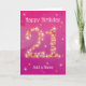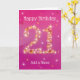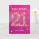Tarjeta de cumpleaños número 21. 21 en Estrellas - Número de Edad - Tarjeta de 21º cumpleaños - Fondo rosa/púrpura - Texto personalizable Tarjeta rosa/púrpura con diseño de número estrella - el número "21" se crea con estrellas amarillas, rojas y blancas Texto personalizable: delante de la tarjeta: Cumpleaños feliz y Añadir su nombre. Texto personalizable: tarjeta interior: Deseándote un cumpleaños 21 muy feliz. Puede editar o eliminar el texto que desee haciendo clic en "Personalizar esta plantilla". Hay más colores y otras edades disponibles. Si tiene un requisito específico, por favor contáctame.
