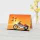 Una moto similar a una Harley que se alza junto al mar con una gloriosa puesta de sol naranja. Una gran carta para cualquiera que le guste el ciclismo y las motocicletas. Vea toda la gama de tarjetas para edades y relaciones en mi tienda. Todos los derechos de autor de arte Norma Cornes