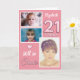 Personalice esta tarjeta de cumpleaños número 21 con un nombre y fotos Diseñadas en rosa y blanco, con un corazón de amor. 21 hoy Feliz Cumpleaños Todavía tan lindo
