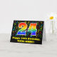 Este diseño de tarjeta de felicitación de cumpleaños alegre, emocionante y colorido presenta un gran número "24" con un patrón de gradiente de espectro de arcoíris. También incluye el mensaje "Feliz cumpleaños 24" y un nombre de destinatario editable. La parte frontal también presenta un patrón colorido de notas y símbolos musicales. El interior contiene un mensaje de felicitación de cumpleaños personalizado, o quizás podría ser borrado y dejado en blanco si se desea escribir un mensaje a mano en su lugar. Una tarjeta de felicitación de cumpleaños personalizada como esta podría ser una forma divertida de enviar felicitaciones de cumpleaños a un músico, un cantante, un compositor musical o alguien más que esté celebrando su vigésimo cuarto cumpleaños.