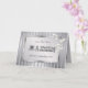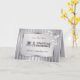 Feliz 25 Aniversario de Boda en corazón de plata para celebrar esa fecha especial de veinticinco años juntos. Tono encantador sobre fondo de franja plateada y acento de lazo. Personalice el texto del frente y el interior de la tarjeta con su información.