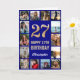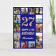 Tarjeta 27.º feliz cumpleaños Collage de fotos azul y oro