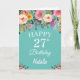 Tarjeta 27.º natalicio Flores florales de acuarela Verde a