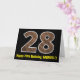 La parte delantera de este rústico y divertido diseño de tarjetas de felicitación temática de cumpleaños tiene un gran número "28" con un falso patrón de estilo inspirado en granos de madera, junto con el mensaje "Feliz cumpleaños 28", y un nombre personalizado. El interior presenta un mensaje de bienvenida de cumpleaños de personalizado, o tal vez podría ser borrado y dejado en blanco si se va a escribir un mensaje a mano. Una tarjeta de cumpleaños personalizado como esta podría ser una manera divertida de enviar deseos de cumpleaños a alguien que esté celebrando su vigésimo octavo cumpleaños. [~Z0000431]
