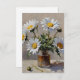 Se organiza un ramo de margaritas en un sencillo frasco de cristal, con pétalos blancos y centros amarillos destacados. El juego de la luz y la sombra crea una atmósfera serena y natural.