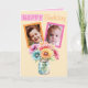 Celebre su día especial con una encantadora tarjeta de 2 fotos de cumpleaños con brillantes daisies gerbera en un rústico frasco de albañil. Este alegre diseño añade un toque de calidez y felicidad, perfecto para difundir la alegría por el cumpleaños. Personalízalo con tu propio mensaje de corazón y dos fotos memorables para hacerlo verdaderamente único. Ya sea por un amigo, un miembro de la familia o alguien especial, esta tarjeta de cumpleaños personalizado es una manera dulce de mostrarte que te importa. ¡Creen un gran placer con este bonito diseño de inspiración floral! Naranja / rosa