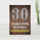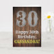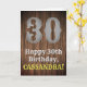 El diseño de la tarjeta de felicitación con temática de cumpleaños está inspirado en este país y el viejo oeste estadounidense parece un gran estilo rústico con el número "30", el mensaje "Feliz cumpleaños número 30", un nombre editable, y un diseño inspirado en el patrón de diseño de un grano de madera de imitación o imitación. El interior tiene un mensaje de bienvenida de cumpleaños de personalizable, o tal vez podría ser borrado y dejado en blanco si un mensaje se va a escribir a mano en su lugar. Una tarjeta de felicitación personalizada de cumpleaños como esta podría ser enviada para celebrar el trigésimo cumpleaños de alguien. [~Z0000469]