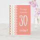 Elegante tarjeta de cumpleaños número 30 para un primo, con un patrón de chevron a la moda en Coral, Mint Green y White de Judy Adamson. Puede editar el texto interior si lo desea.