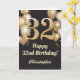 Tarjeta 32.º Confetti de Globos de Oro y Negro