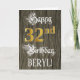La parte delantera de este elaborado y ornamentado diseño de tarjetas de felicitación temática de cumpleaños incluye el mensaje "Feliz cumpleaños número 32", y un nombre editable del destinatario. Parte del mensaje está en un texto sofisticado de estilo de escritura, el gran número "32nd" presenta un patrón de aspecto falso/imitación de inspiración dorada, y el fondo tiene un patrón de imitación/imitación inspirado en los granos de madera. El interior tiene un mensaje de saludo de cumpleaños modificable, o tal vez podría ser borrado y dejado en blanco si se va a escribir un mensaje a mano. Una tarjeta de felicitación formal de cumpleaños de personalizable como esta podría ser enviada para celebrar el cumpleaños treinta y dos de alguien. [~Z0000561]