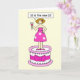Una dama personalizado sobre un gran pastel, vestido de rosa y sosteniendo un cóctel. Ella dice "32 es el nuevo 22".