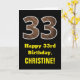 Tarjeta 33.ª Cumpleaños: Nombre, Modelo Faux Wood Grain "3