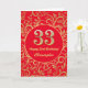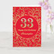 33.ª Tarjeta de cumpleaños de patrón floral rojo y dorado. Para una mayor personalización, haga clic en el botón "Personalizar" y utilice nuestra herramienta de diseño para modificar esta plantilla.