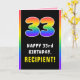 Tarjeta 33° cumpleaños: arcoiris colorido # 33, nombre per