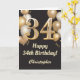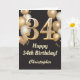 Tarjeta 34.º Confetti de Globos de Oro y Negro