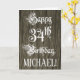 La parte delantera de este lujoso y ornamentado diseño de tarjetas de felicitación con temática de cumpleaños muestra el mensaje "Feliz cumpleaños número 34", en un elegante texto estilo script. En la parte delantera también hay un nombre de receptor personalizado y un fondo de patrón de apariencia de madera falsa. El interior tiene un mensaje personalizado de bienvenida de cumpleaños, o tal vez podría ser borrado y dejado en blanco si se va a escribir un mensaje a mano. Una elaborada tarjeta de felicitación de cumpleaños de personalizable como esta podría ser usada para reconocer el cumpleaños treinta y cuatro de alguien. [~Z0000556]