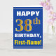 Tarjeta 38.o cumpleaños del oro intrépido, azul, falso con